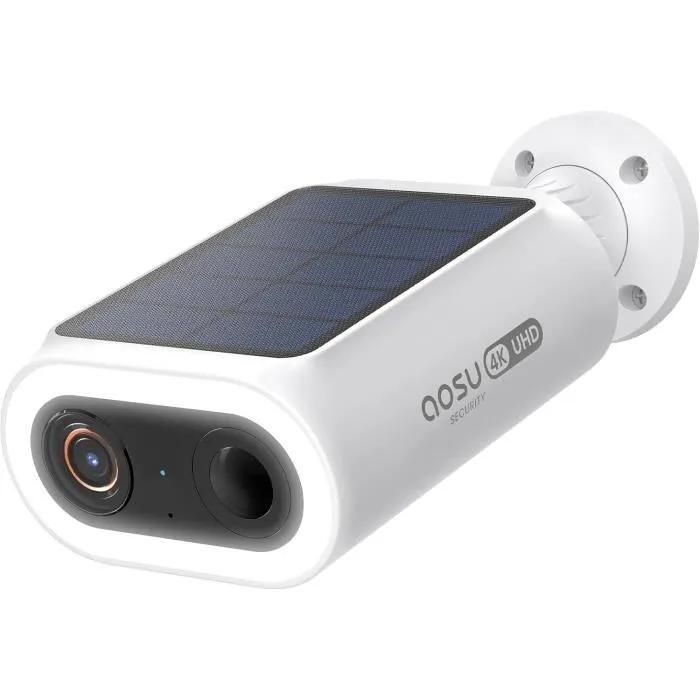 AOSU Caméra solaire 4K UHD, batterie 5000mAh, installation facile, blanc, prise Eu, 4 mm