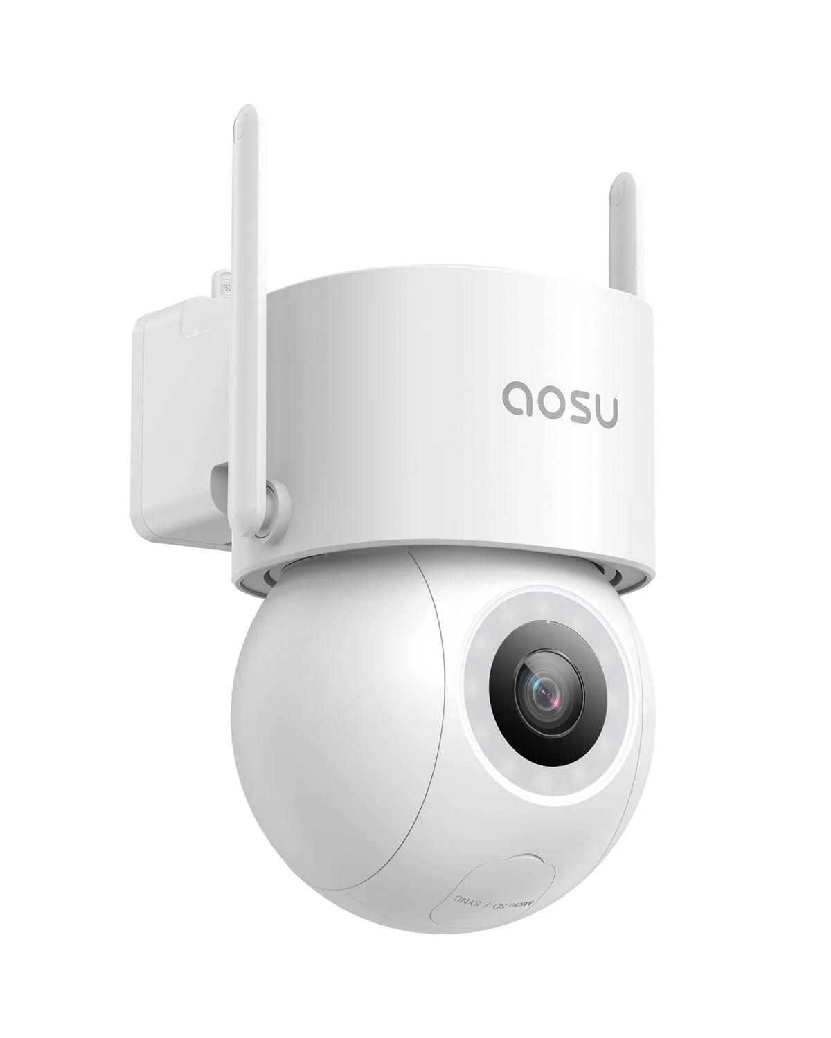 Aosu 2K Caméra Wi-Fi Extérieure Couleur Vision Nocturne, Caméra WiFi 3MP 360 ° IP65, Détection Humaine, Suivi Intelligent, 2.4 Ghz