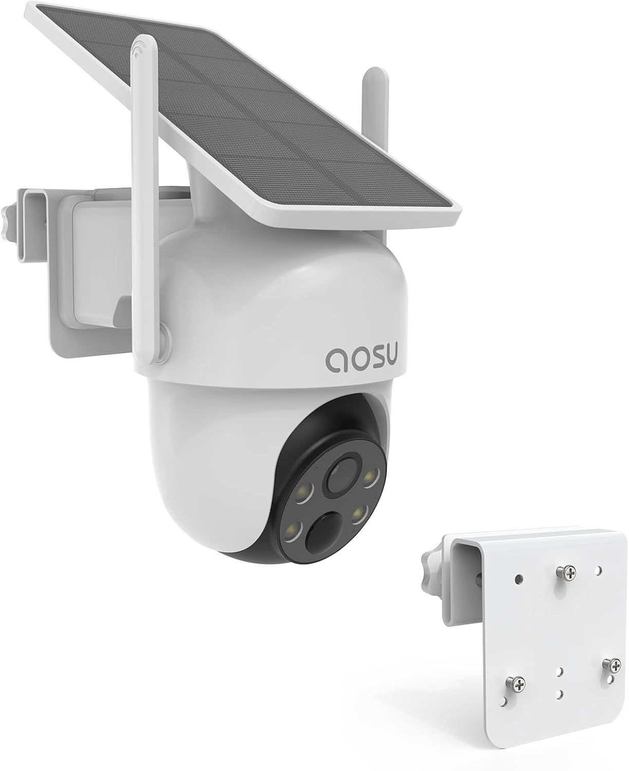 Aosu 2K Caméra Surveillance Extérieure sans Fil, Base+ 4 Cam, 3MP WiFi Solaire Caméra Exterieur à Batterie, Panneau Solaire Intégré, Vision Nocturne Couleur, Détecteur de Mouvement