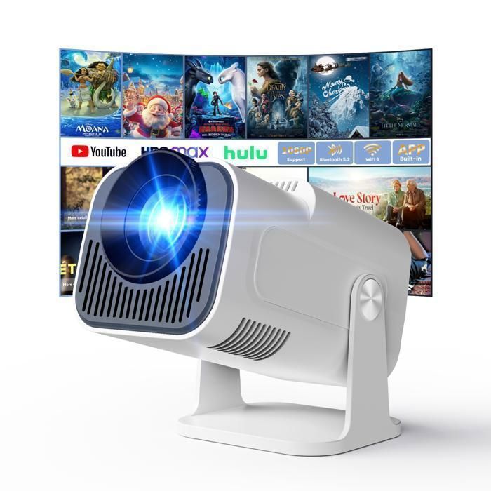 [App intégrée] Vidéoprojecteur 4K 1080P Mini Projecteur Portable Android TV WiFi 6 BT 5.4 Projecteur Full HD 1080P - Blanc