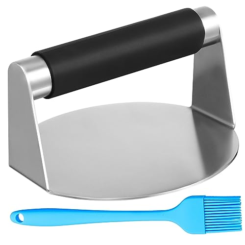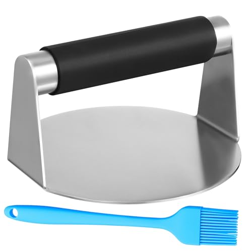 UTHCLO Presse à Burger Acier Inoxydable avec Brosse à Huile Silicone Aplatisseur Viande Rond Multifonction pour Steak Haché et Barbecue et Facile à Utiliser Couleur Couleur Aléatoire