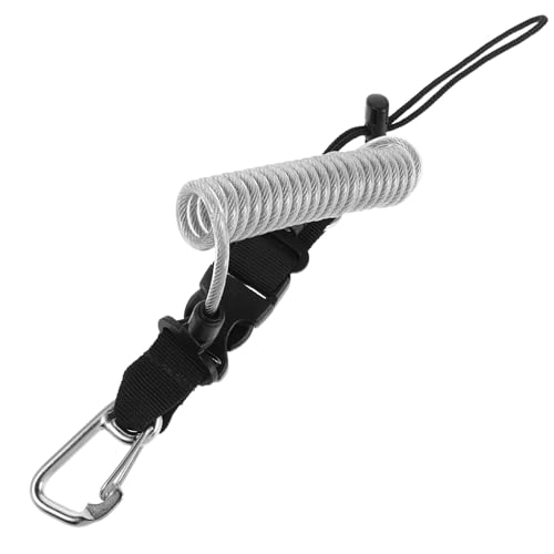 Ipetboom Longe de Plongée en Acier Inoxydable avec Ressort Rétractable, Corde de Sécurité pour Appareil Photo Sous-marin, Boucle à Dégagement Rapide, 1 Pièce Argenté, pour Plongée et Apnée