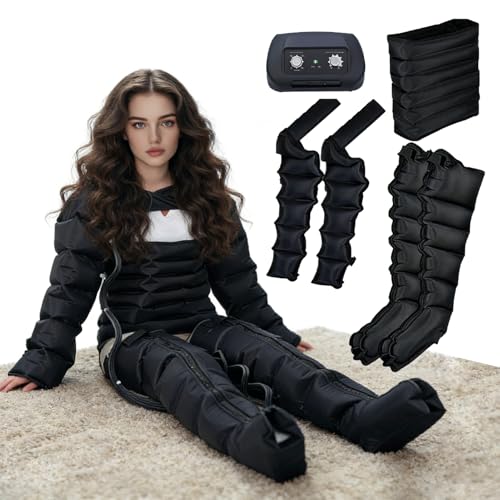 Miuxe Appareil De Massage À Compression d'air pour Jambes, Drainage Lymphatique Jambes, 6 Chambres Botte Pressotherapie Jambes Et Ventre Et Bras, Appareil Circulation Sanguine Jambes