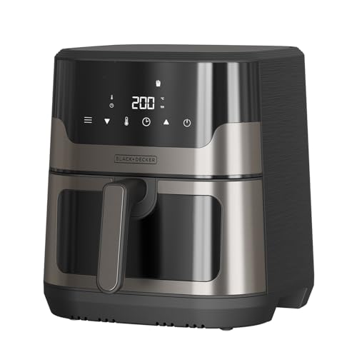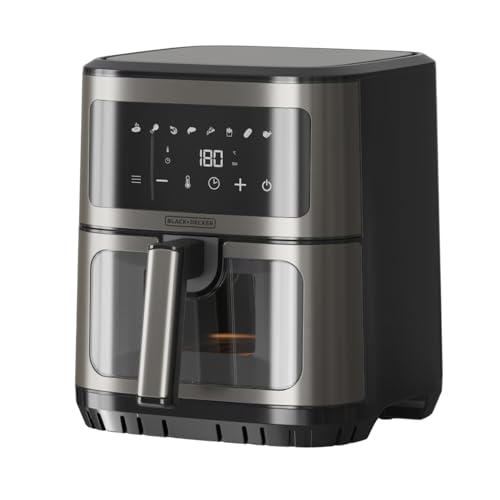 Black+Decker - Friteuse à Air Sans Huile 1700W | Format Familial 8-9 Personnes | 8 Programmes | Écran Tactile Digital | Température 80-200°C | Minuteur 0-60 min | Fenêtre de Cuisson