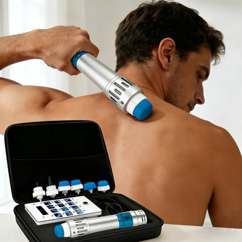 KEhtu Appareil de thérapie par Ondes de Choc, Masseur de soulagement avec 7 têtes de Massage, écran Tactile Haute définition, 12 Modes au Choix pour Le Dos, Les épaules et la Taille.