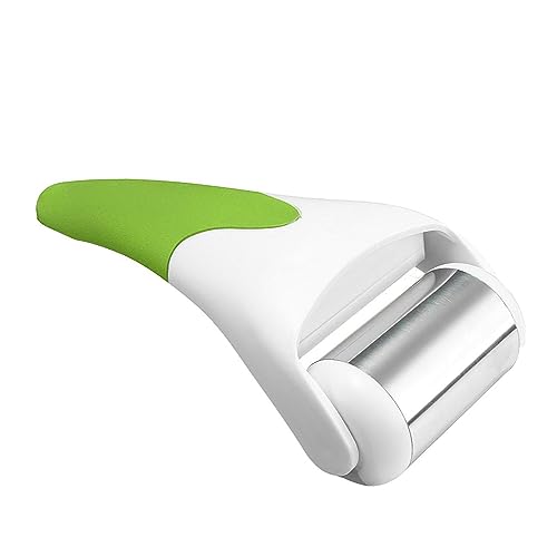 DAM Rouleau à glace pour le visage, instrument de massage et de soins. Roue en acier inoxydable. 9x5x19 cm. Couleur : vert