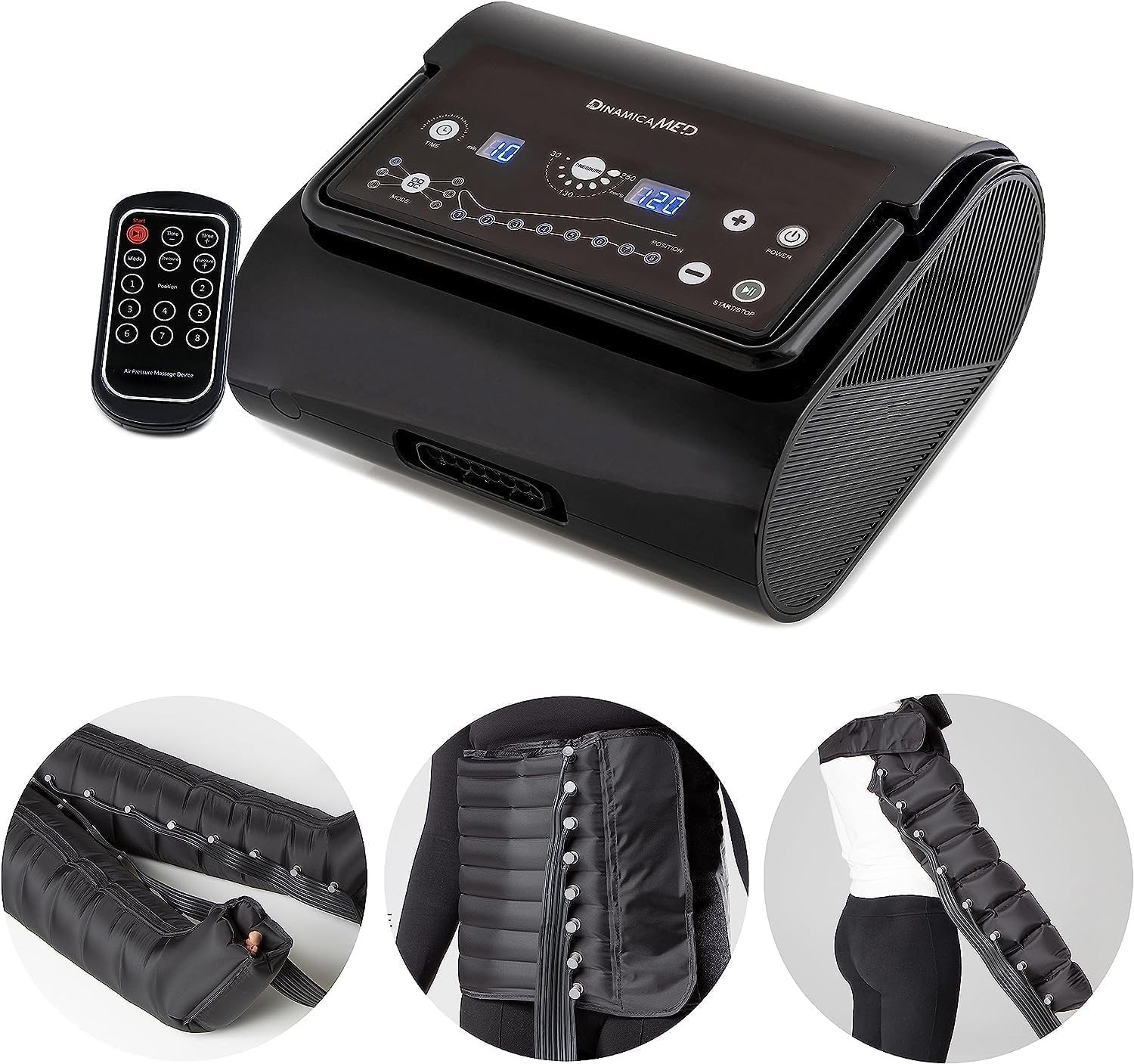Dinamicamed Premium 8.0 Appareil de Pressothérapie avec Genouillères Noir
