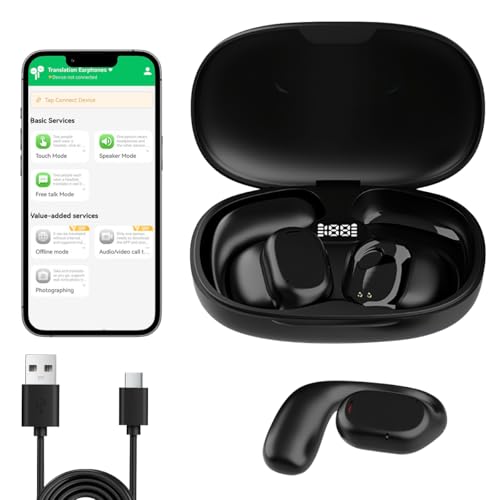 HISHELL Casque à Oreille Ouverte, écouteurs de Traduction de Langue, 144 Langues Appareil de Traduction en Ligne en Temps réel, écouteurs de Traduction vocale Bluetooth avec Crochet d'oreille