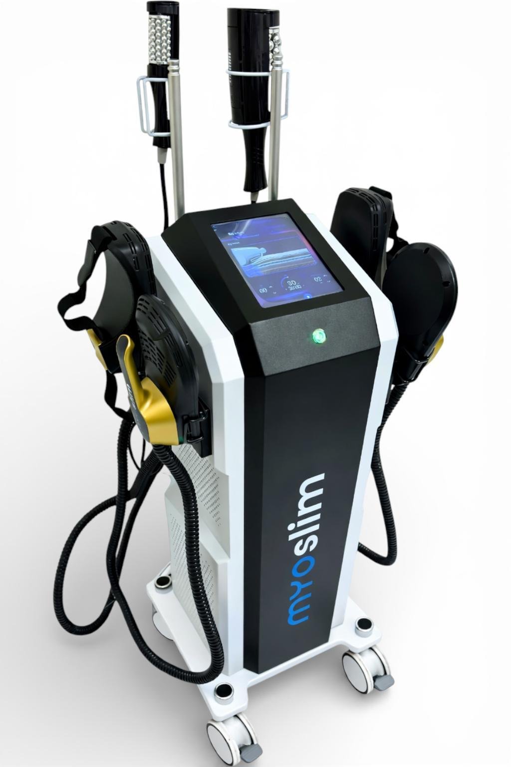 Appareil EMS professionnel pour instituts de beauté Myoslim PRO 4 têtes EMS + 2 rouleaux Madero, machine pour salon de beauté, noir et or
