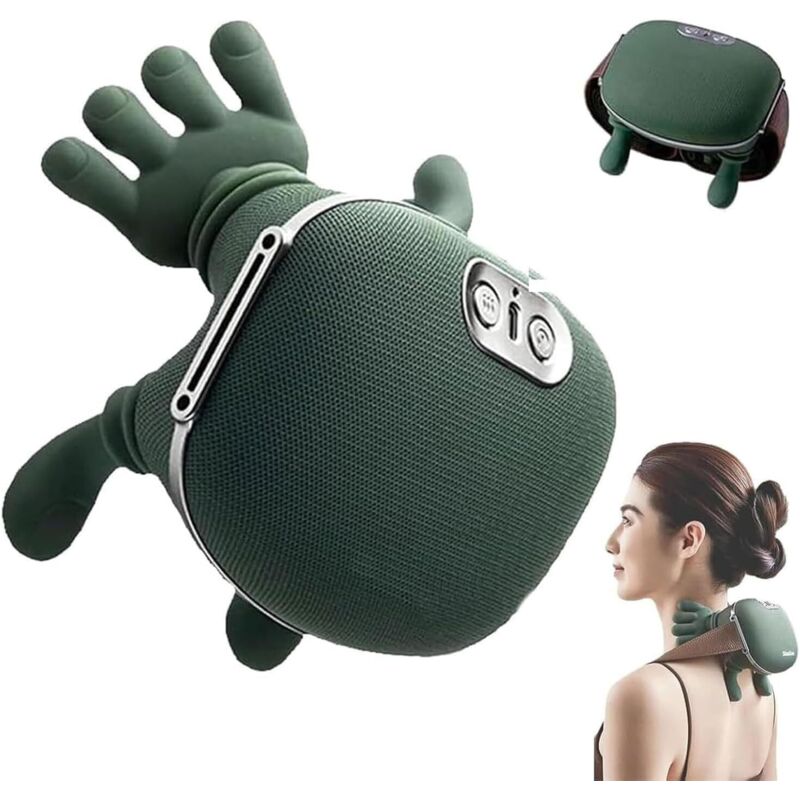 Appareil de massage pour les épaules, la nuque et le dos, rechargeable et portable, vert olive, avec 3 vitesses pour détendre les épaules et la nuque.