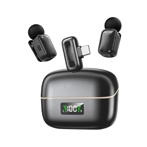 Fockety Microphone Lavalier, Micro sans Fil Antibruit, 20 Heures D'autonomie, Mini Microphone Léger Plug and Play avec Interface de Type C, pour Appareil Photo de Téléphone Android (Abricot Noir)