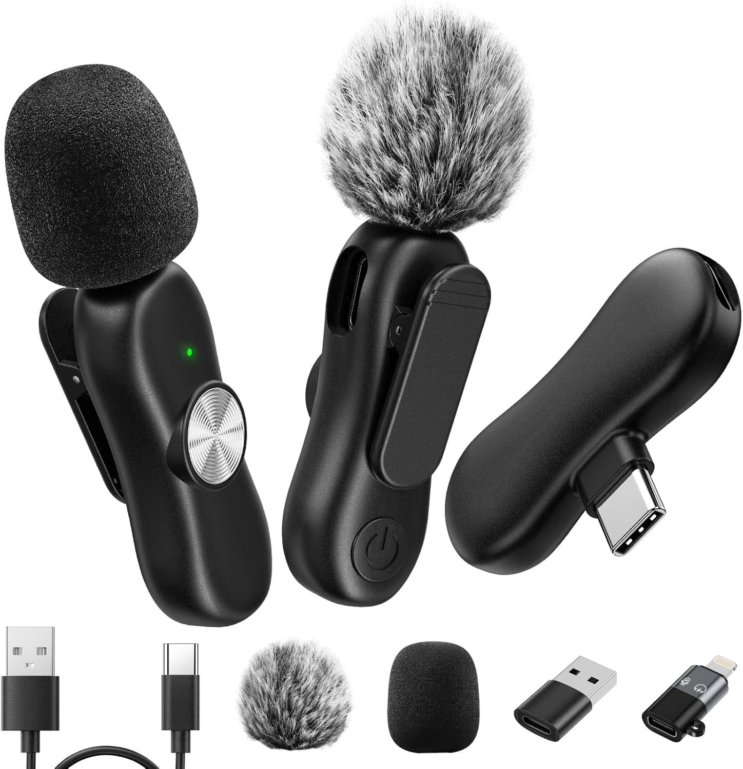 Link 2 Lot De 2 Microphones Lavalier Sans Fil Pour Iphone, Appareil Photo, Android, Mini Microphones Sans Fil, 48 Khz 24 Bits, 1000 Ft, 30 H D'Utilisation, Réduction Du Bruit, Clip Sur Micro