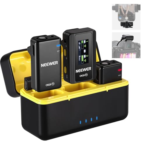 NEEWER CM28(1 RX + 2 TX + étui de chargement),Microphone Cravate sans fil,Bruit Réduction Intelligente,Enregistrement non compressé 48 kHz/16 bits,9 heures,portée de 200m,iPhone,Android,appareil photo