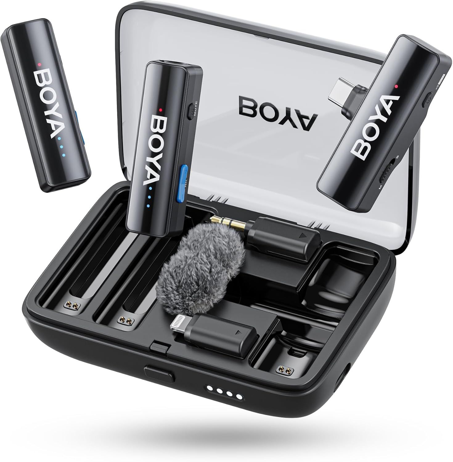 BOYA BOYALINK Lot de 3 mini microphones pour appareil photo/iPhone/Android, Lavalier sans fil avec IA, 30 heures d'autonomie, 300 m de portée pour Vlog, TikTok