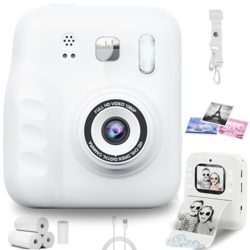 Appareil Photo Instantané Enfants, 1080P HD Appareils Photo Numériques Instantanés, 2.4'' Écran Appareil Photo Enfants avec Papier d'impression & Carte 32GB, Cadeau pour Filles Garçons 3-12 Ans