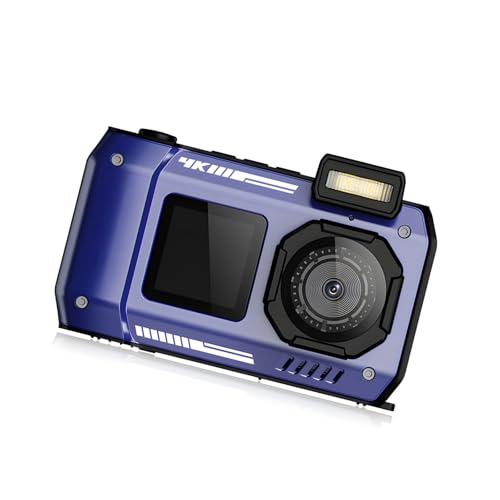 Caméra sous-Marine, Appareil Photo Numérique étanche Full HD 2,7 K 48 MP 10 Pieds, Caméra de Poche LCD Avant Arrière Double écran avec Zoom Numérique 16X pour la Plongée en Apnée, (Bleu)
