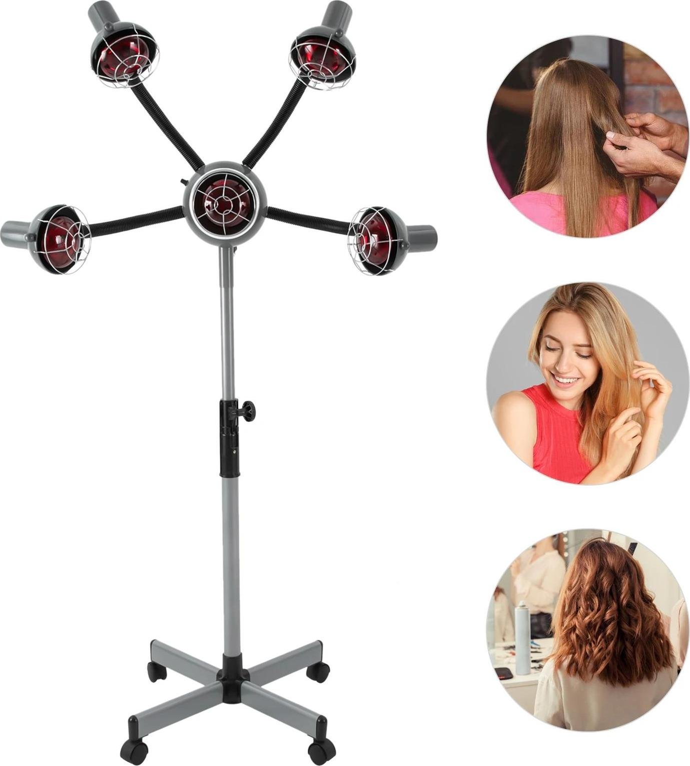 Appareil chauffant infrarouge pour cheveux - Processeur thermique/vaporisateur de salon pour permanentes et colorations - 5 lampes infrarouges - 750 W - Hauteur 112-136 cm - 40-80 °C - Noir