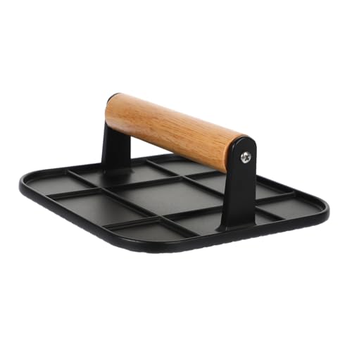 Joeji's Kitchen Presse Hamburger en Fonte - Presse striée pour faire des marques de cuisson parfaites - Presse Burger Steak Haché résistante avec poignée en bois