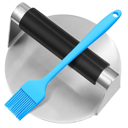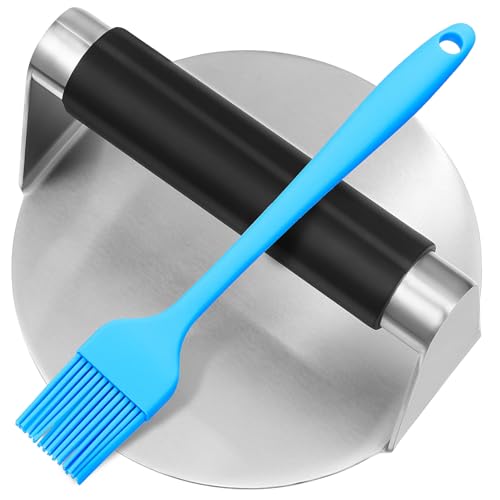 UTHCLO Presse à Burger Acier Inoxydable avec Brosse à Huile Silicone Aplatisseur Viande Rond Multifonction pour Steak Haché et Barbecue et Facile à Utiliser Couleur Couleur Aléatoire