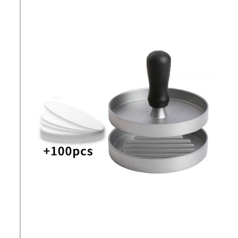1PC Presse à Burger Moule Steak Haché en Aluminium Revêtement Antiadhésif + 100 Feuilles De Papier , Ustensiles Cuisine pour Faire Délicieux