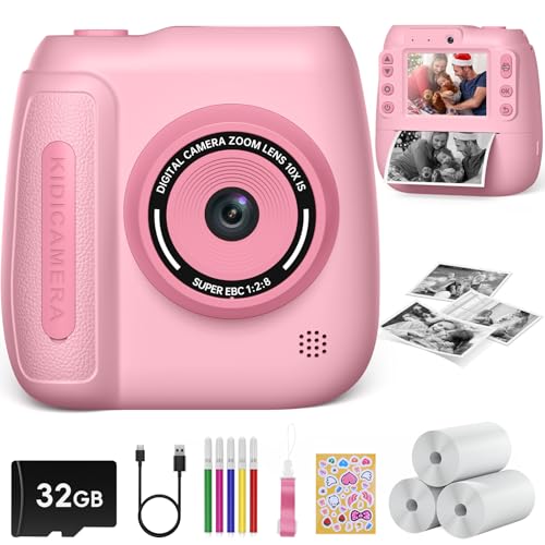 Appareil Photo Instantané Enfant, 1080P HD Vidéo Selfie Caméra Enfant pour Enfants avec Carte de 32 Go et Papier Photo Imprim, Noël et anniversaire Cadeau Jouet pour Filles Garçons Adolescent 3-12 Ans