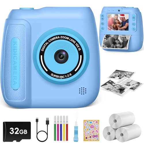 Hangrui Appareil Photo Instantané Enfant, 2.4" Écran Appareil Photo Numérique Enfant avec Carte de 32GB & 3 Rouleaux de Papier d'impression,Cadeau Jouet pour Enfant Garçons Filles de 3-9 Ans -Bleu