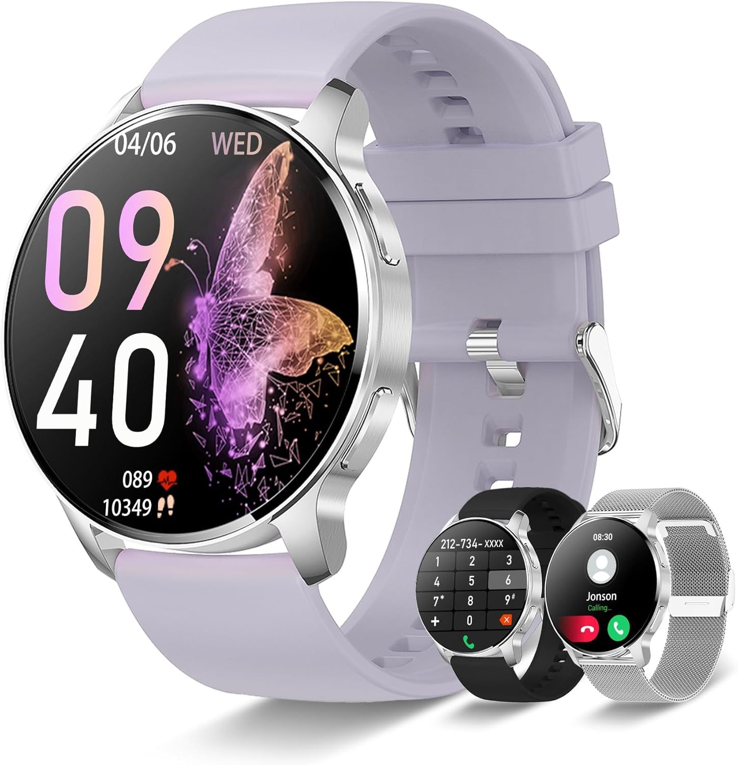 FITFLEX Montre Connectée Femme 120+Mode Sportif, 1,26 "AMOLED Smartwatch Femme avec Appels Bluetooth, IP68 Étanche, Fitness Smart Watch Moniteur de Fréquence Cardiaque/Sommeil Android iOS (Violet)
