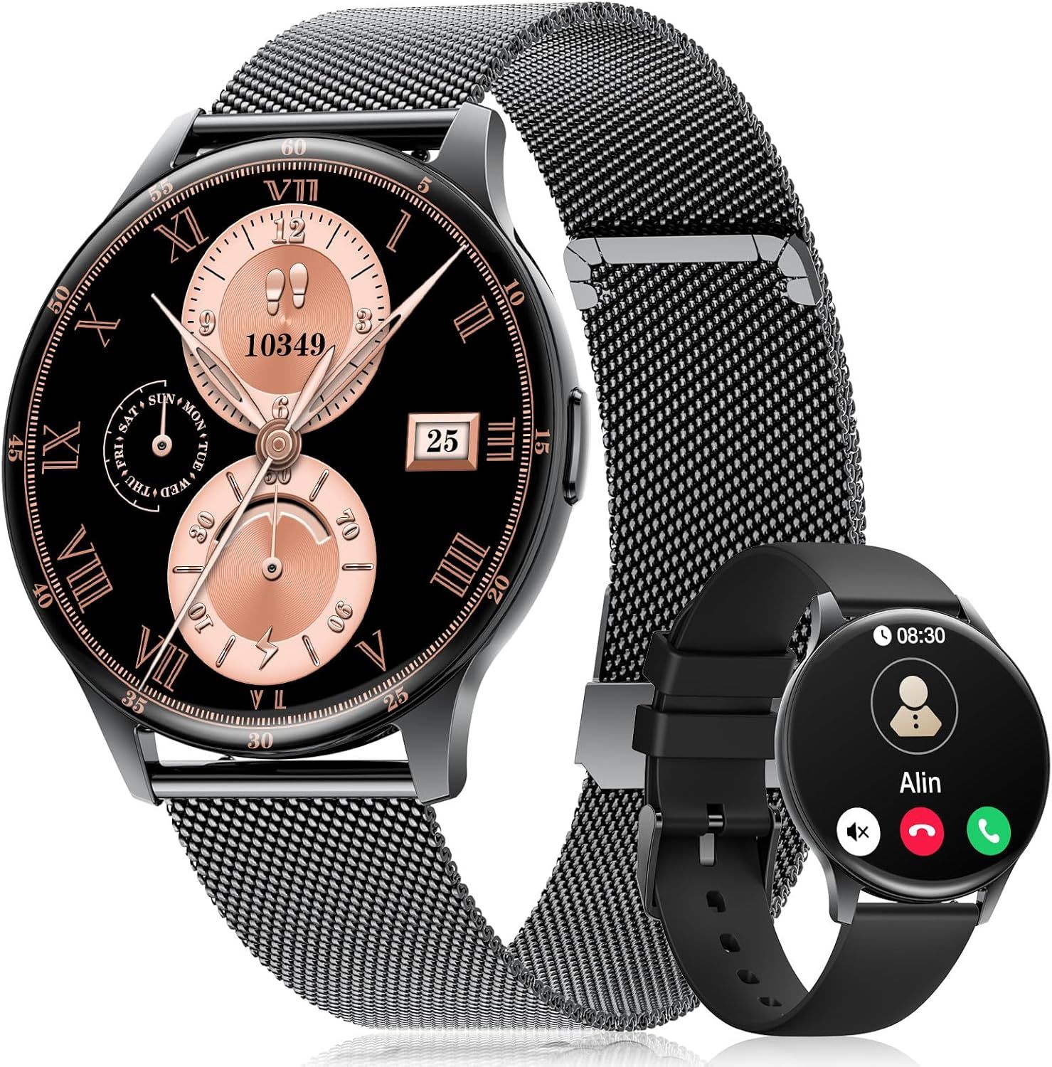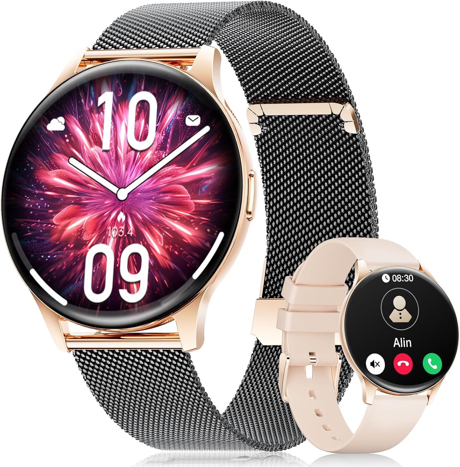 Erkwei Montre Connectée Femme avec Appels et Notifications Messages, Smartwatch Femme Moniteur de Sommeil Podometre Calories Cardiofrequencemètre, Smart Watch pour iOS Android
