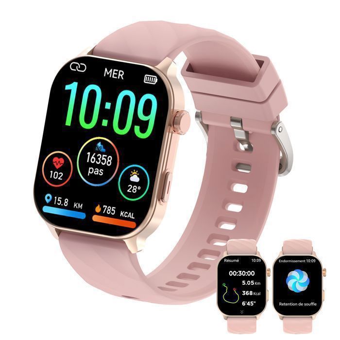 LOSEI Montre Connectée GPS 10M Waterproof Suivi Santé Appels Bluetooth SmartWatch 2.01 pour Android/iOS Rose