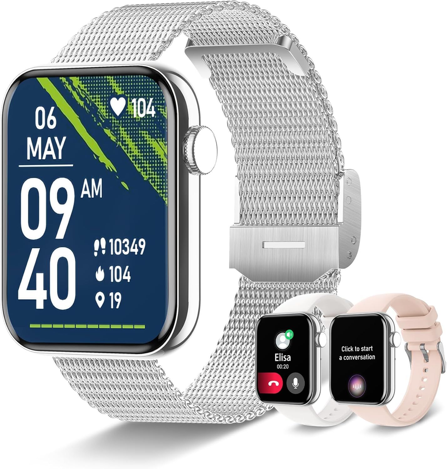 Betatree Montre connectée pour femme, homme, appels et réponse/WhatsApp, 1,85", montre numérique de sport, chronomètre, podomètre, 19 sports Android iOS Smart Watch avec sommeil/moniteur de fréquence