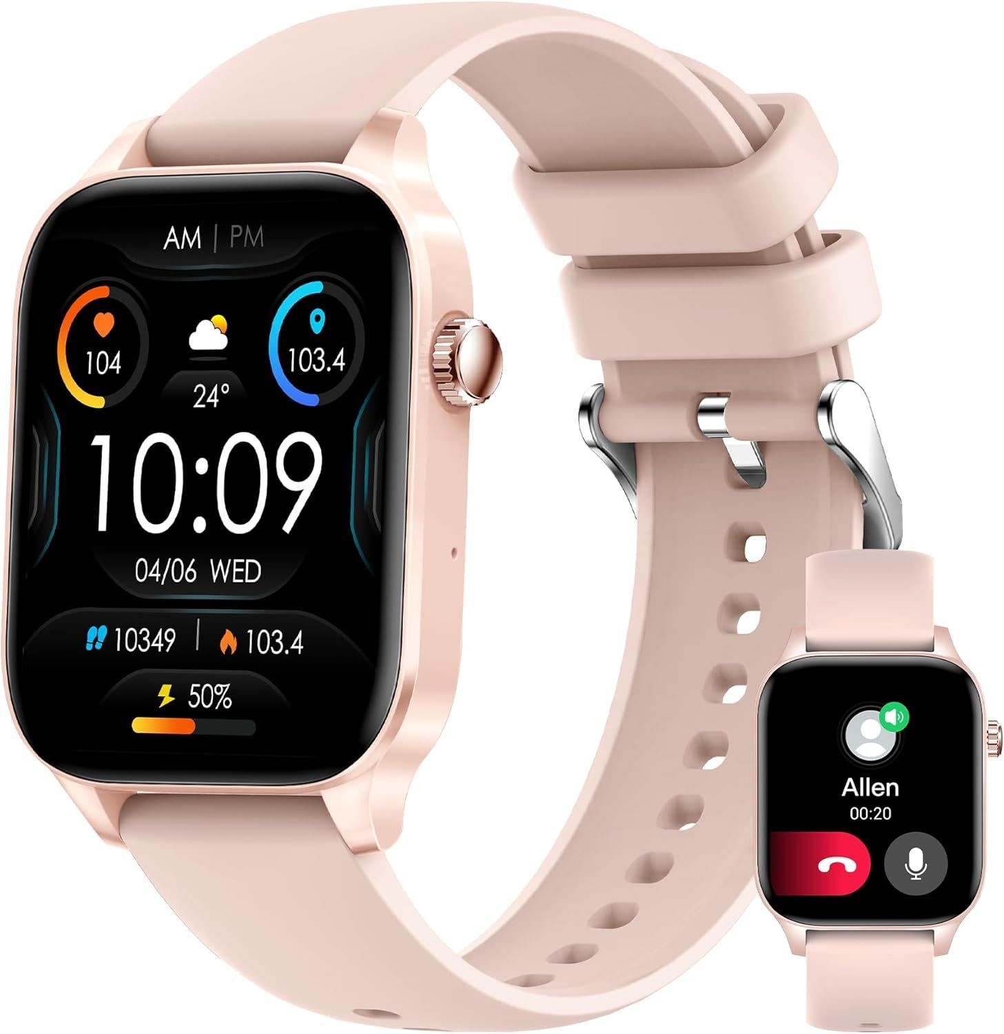 Parsonver Montre Connectée Homme Femme avec Appels Bluetooth, Smartwatch avec GPS, 3ATM Étanche, 1,85" Montre avec 100+ Sports, Fréquence Cardiaque, Sommeil, Fitness Watch pour Android & iOS (Or rose)