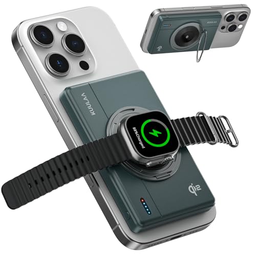 Kuulaa Qi2 Batterie externe sans fil 10 000 mAh compatible avec Apple Watch Charge Magsafe 15 W et fonction de charge rapide USB-C 30 W Batterie externe compatible avec iPhone 16 Pro Max/16/15-12