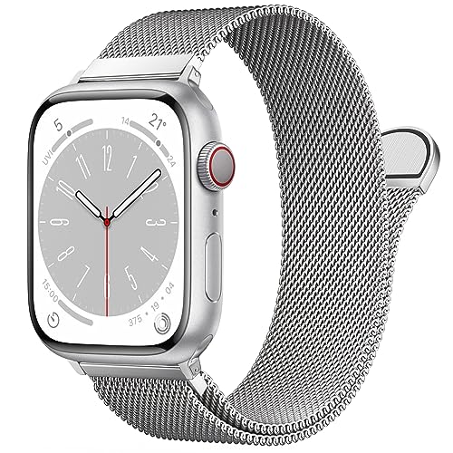 Uni-unzeit Bracelet De Remplacement Milanais Compatible Avec Apple Watch 49mm 46mm 45mm 44mm 42mm, Bracelets RéGlables MagnéTiquement Pour Iwatch Series 10 9 8 7 6 5 4 3 Se Ultra, Argent