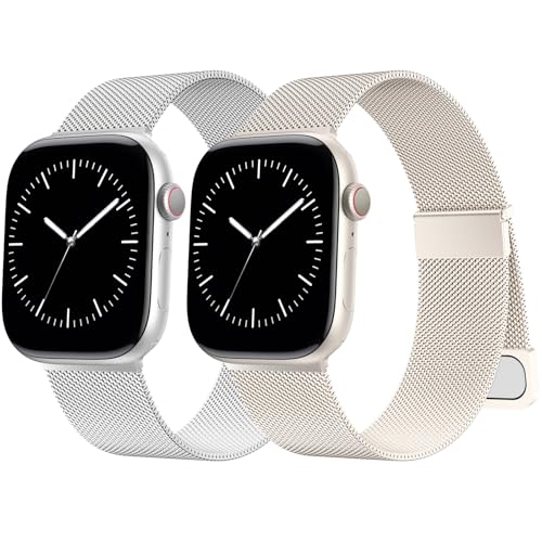 AMSKY 2 Pièce Magnétique Bracelets Compatible avec Bracelet Apple Watch 44mm 40mm 46mm 42mm 45mm 41mm 38mm 49mm, Metal Milanais avec 2 Aimant pour iWatch Serie 11 10 9 8 7 6 5 4, SE Ultra 3 2 1