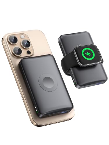 Batterie Externe pour mag Safe pour Apple Watch/iPhone 16/15/14/13/12 10 000 mAh avec Chargeur i-Watch, Charge Rapide