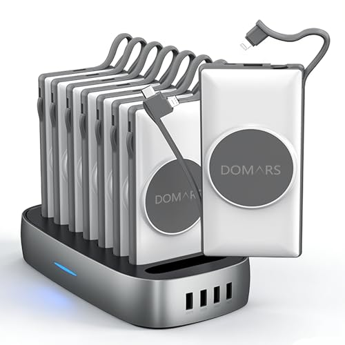 Domars Station de Recharge avec Batterie Externe Magnétique 6x10000 mAh,Chargeur Portable,Deux Câbles Type-C et Apple Intégrés,12 Protections pour Les Séries iPhone 17/16/15/14/13/12 (Blanc)