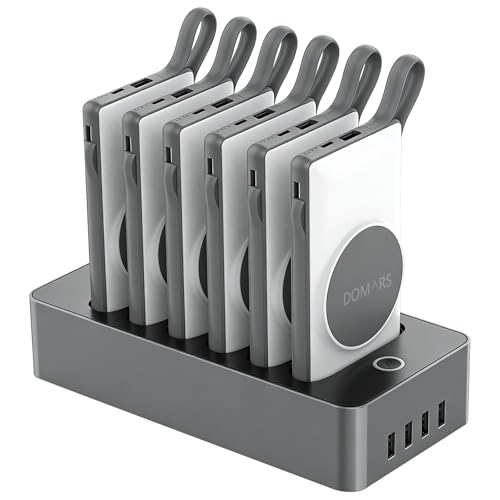 Domars Station de Recharge avec Batterie Externe Magnétique 6x10000 mAh,Chargeur Portable,Deux Câbles Type-C et Apple Intégrés,12 Protections pour Les Séries iPhone 17/16/15/14/13/12 (Noir)