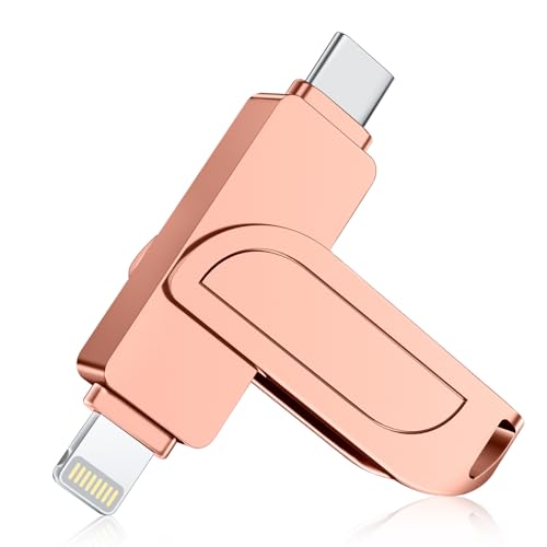 ROSPE Cle USB iPhone, Clé USB C 128 Go Apple MFI Certifié, 3 en 1 Cle USB pour iPhone/iPad/Type C/Android/PC, Stockage Externe Haute Vitesse Clef Transfert Photos, Vidéos, Films(Rose clair)