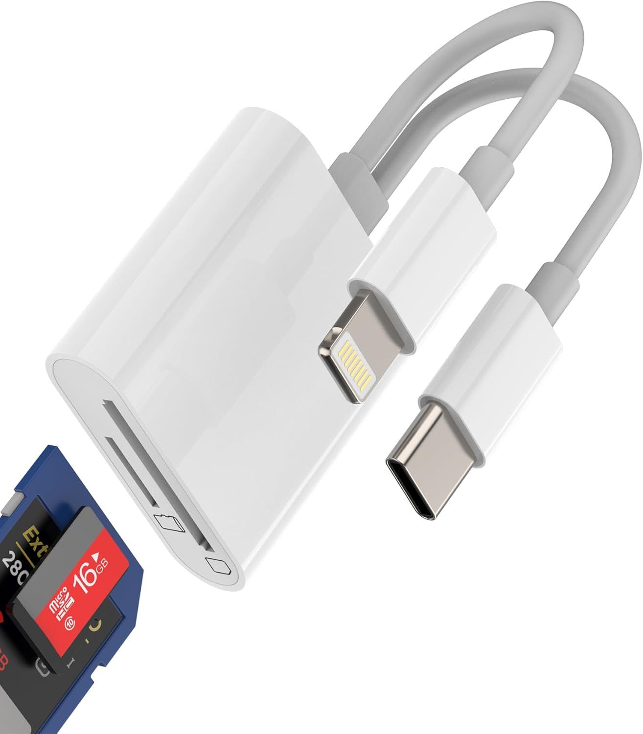 USB C Lightning Vers Lecteur Carte SD(2 en 1)Micro SD Card Reader Pour IPhone 16 15 14 Pro Max Compatible Avec Samsung S24 MacBook Pour Apple Cle Mémoire TF Appareil Photo Pour Ipad Android Téléphone