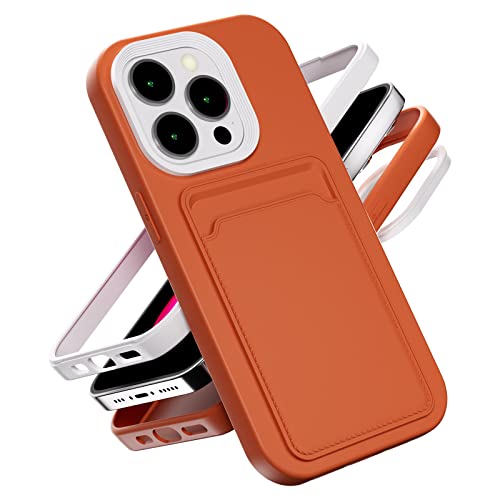 ERDARARIPRO Coque en silicone liquide compatible avec Apple iPhone 13 - Portefeuille fin et souple avec compartiment pour cartes de crédit à l'arrière - Marron
