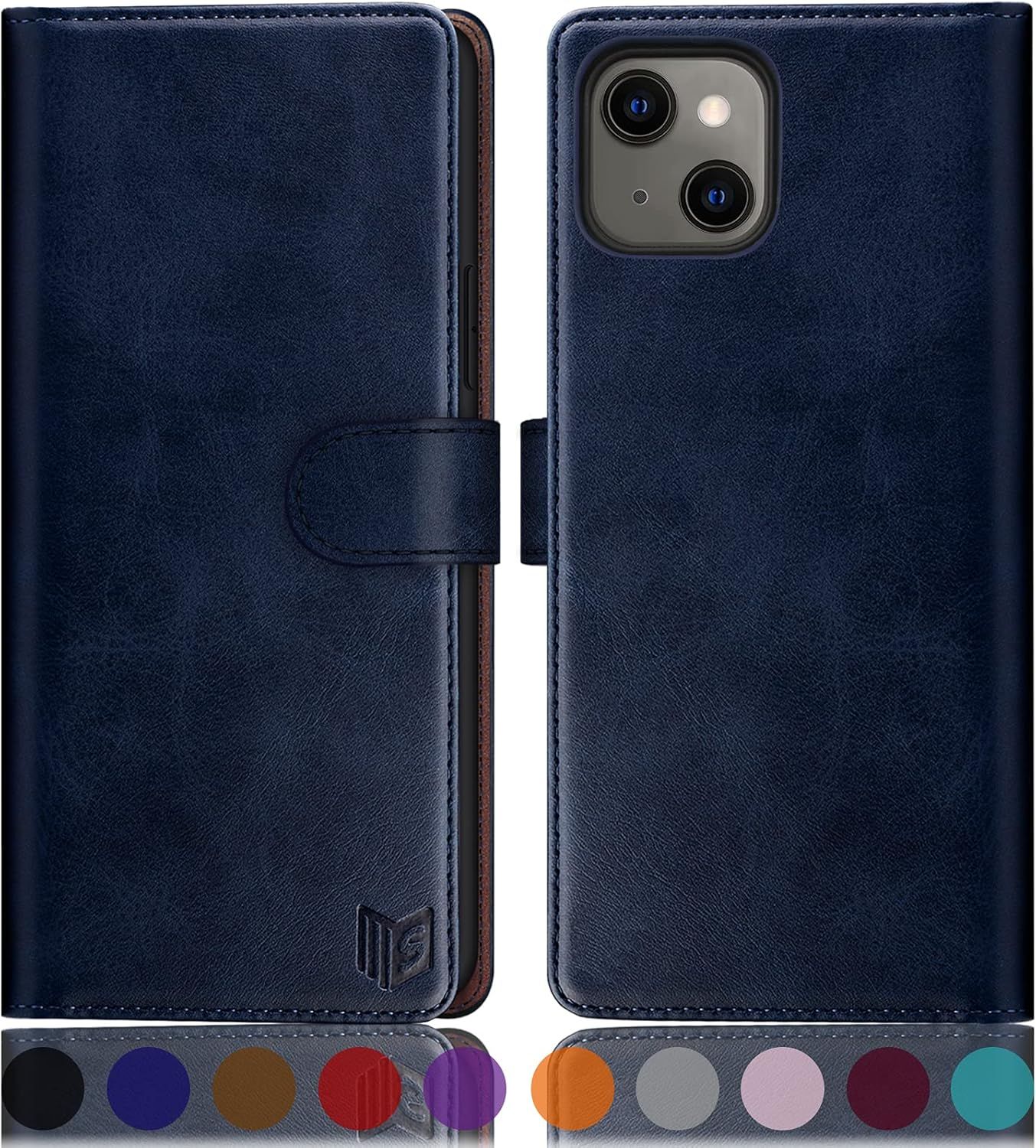 SUANPOT Étui pour iPhone 13 5G 6,1" avec [Porte-Cartes de crédit] [Blocage RFID], étui de Protection à Rabat en Cuir synthétique pour Homme et Femme pour Apple 13, Bleu