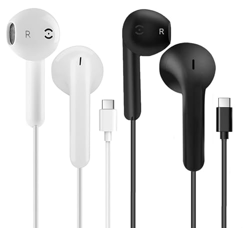 Lot de 2 Écouteurs Intra-Auriculaires USB-C de Type C pour Apple iPhone 16/15, Samsung Galaxy S23/S22/S21/S20/Ultra, Note 10/20, iPad, HiFi Stéréo Type C, pour Musique et Appels