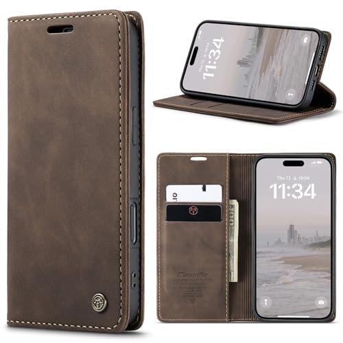 Phernykas Coque pour iPhone 16 Pro Max Case Portefeuille Cover, Housse Flip en Cuir PU Protection Pochette Wallet, [Magnétique] [Kickstand] Étui Apple iPhone 16 Pro Max Porte Carte, Café