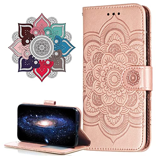 IMIRST Apple iPhone 13 Mini Étui Flip Wallet étui de Téléphone PU Cuir Mandala Embossé Housse Antichoc avec Kickstand Porte-Carte pour Apple iPhone 13 Mini. LD Mandala Rosegold