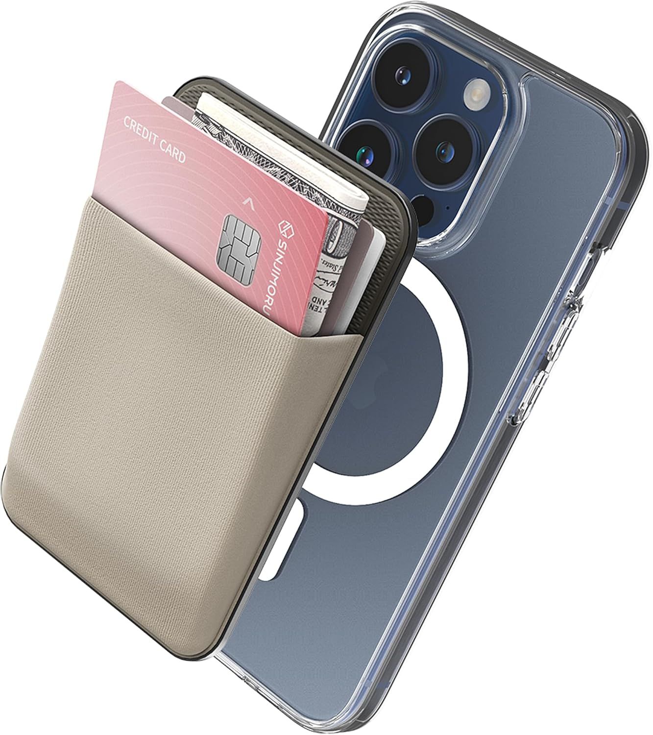 Sinjimoru [2022 Updated] iPhone 14 Basic Magnetic Wallet for Apple Magsafe, Stretchy Fabric Cell Phone Card Holder for Back of Phone for iPhone 12, 13 & 14 Series. M-Basic (Grey)