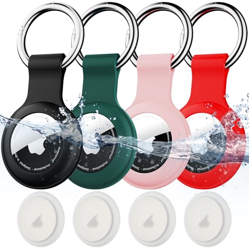 Lot de 4 Porte-clés AirTag en Silicone étanche pour clés,Sacs,Bagages,Colliers pour Animaux de Compagnie,résistant aux Rayures pour Apple AirTag