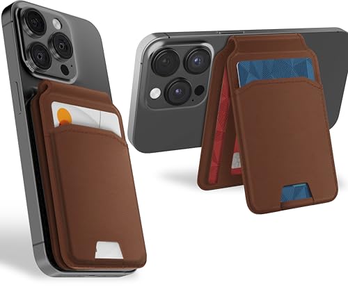 MyGadget Portefeuille Magnétique Magsafe - avec 2 Emplacements pour Cartes - avec Fonction Support - pour Apple iPhone 15 I 14 I 13 I 12 Series - Marron