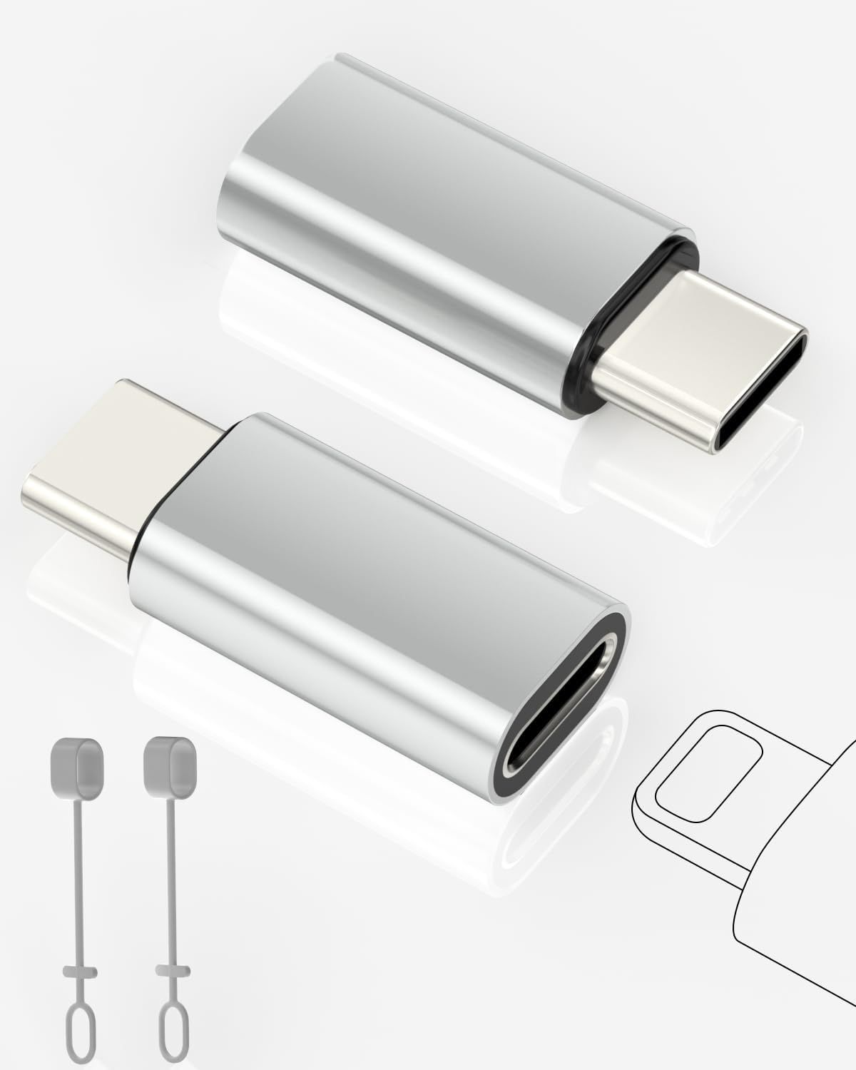 Micro Usb Type C Mâle Vers Ios Femelle,Connecteur Adaptateur,Diviseur De Données,Convertisseur De Charge Pour Apple,Téléphone Portable Android,Adaptateur Pour Ordinateur P - Type 2pcs Ios To Type C