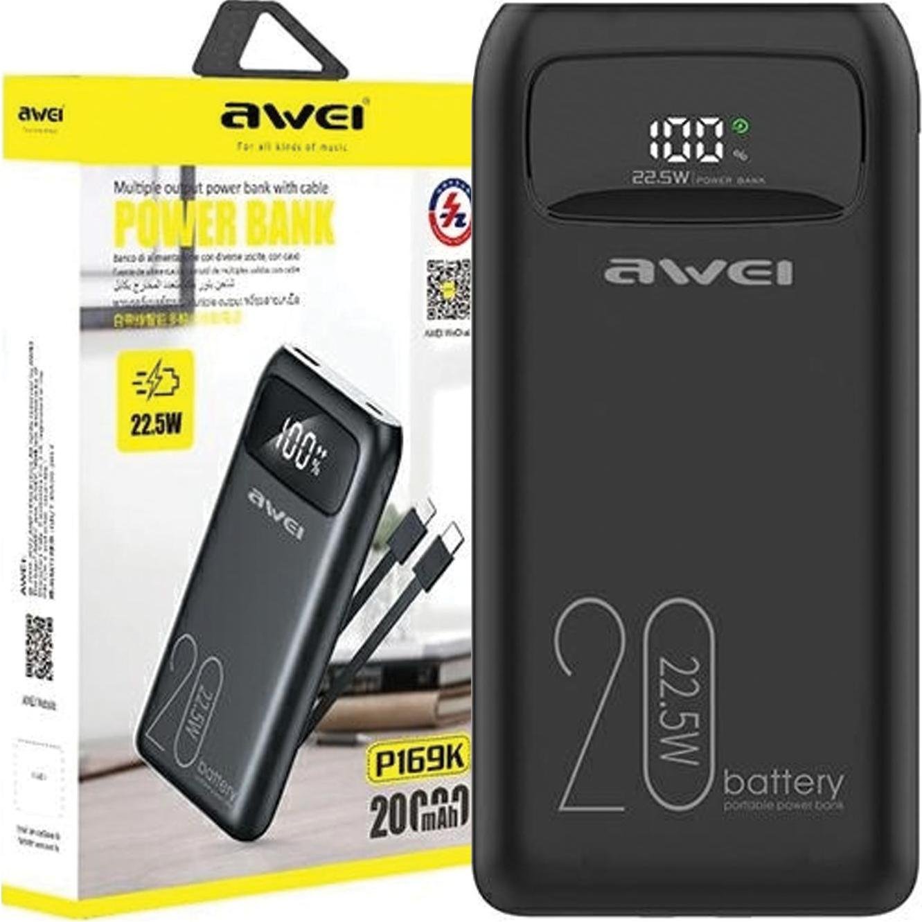 Awei Powerbank 20000mAh P169 K 22,5W USB-C+Apple Cab