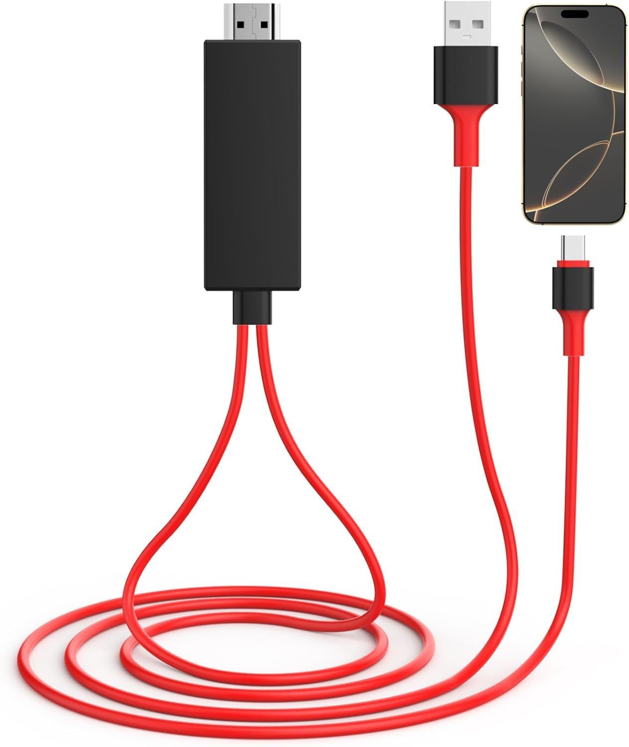 KALANKA-Adaptateur USB C vers HDMI pour iPhone 16 vers TV, [certifié Apple MFi] Adaptateur AV numérique USB Type C 1080p 4K Câble de connecteur d'écran de synchronisation pour iPhone 16/16 Plus/16 Pr